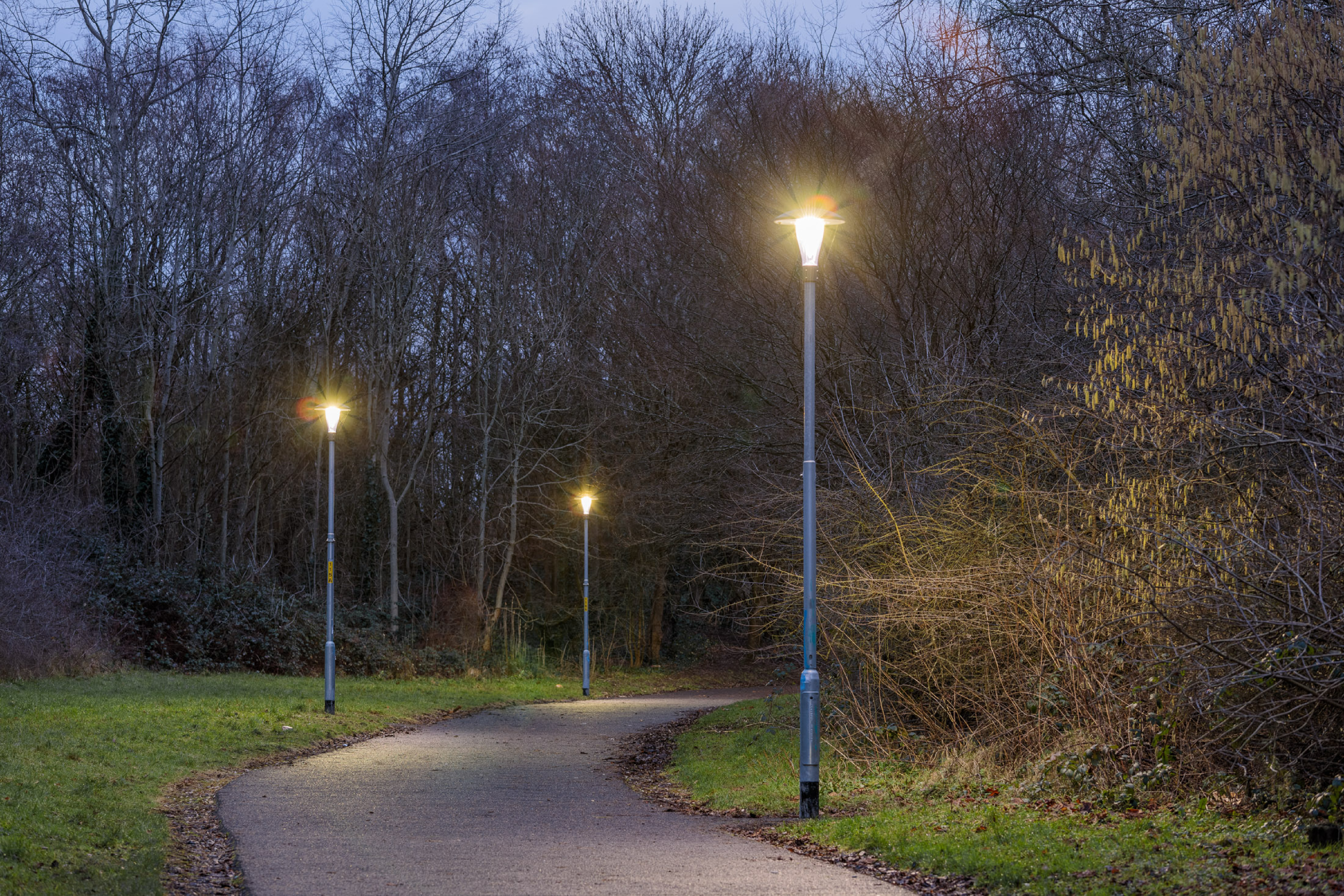 Les luminaires sont connectés et équipés de capteurs de mouvement. L’éclairage est atténué en soirée, en l’absence d’usagers. Et dès que les capteurs détectent un passage, le niveau d’éclairage est immédiatement porté à 100%. Cette solution d’éclairage intelligent n’éclaire la voie qu’en cas de besoin. Elle économise ainsi l’énergie et aide la ville à réduire ses émissions de carbone.