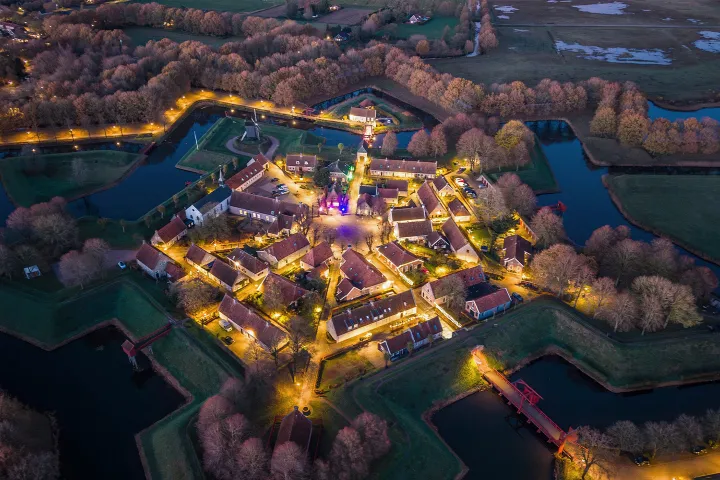 Bourtange est un village fortifié unique, construit en étoile, situé dans la province de Groningue. Edifié en 1593 afin de contrôler l’unique route traversant les marais entre l’Allemagne et la ville de Groningue, il a été entièrement restauré pour retrouver son apparence de 1742. Aujourd’hui, le site constitue un véritable musée à ciel ouvert où patrimoine historique et usages contemporains cohabitent.