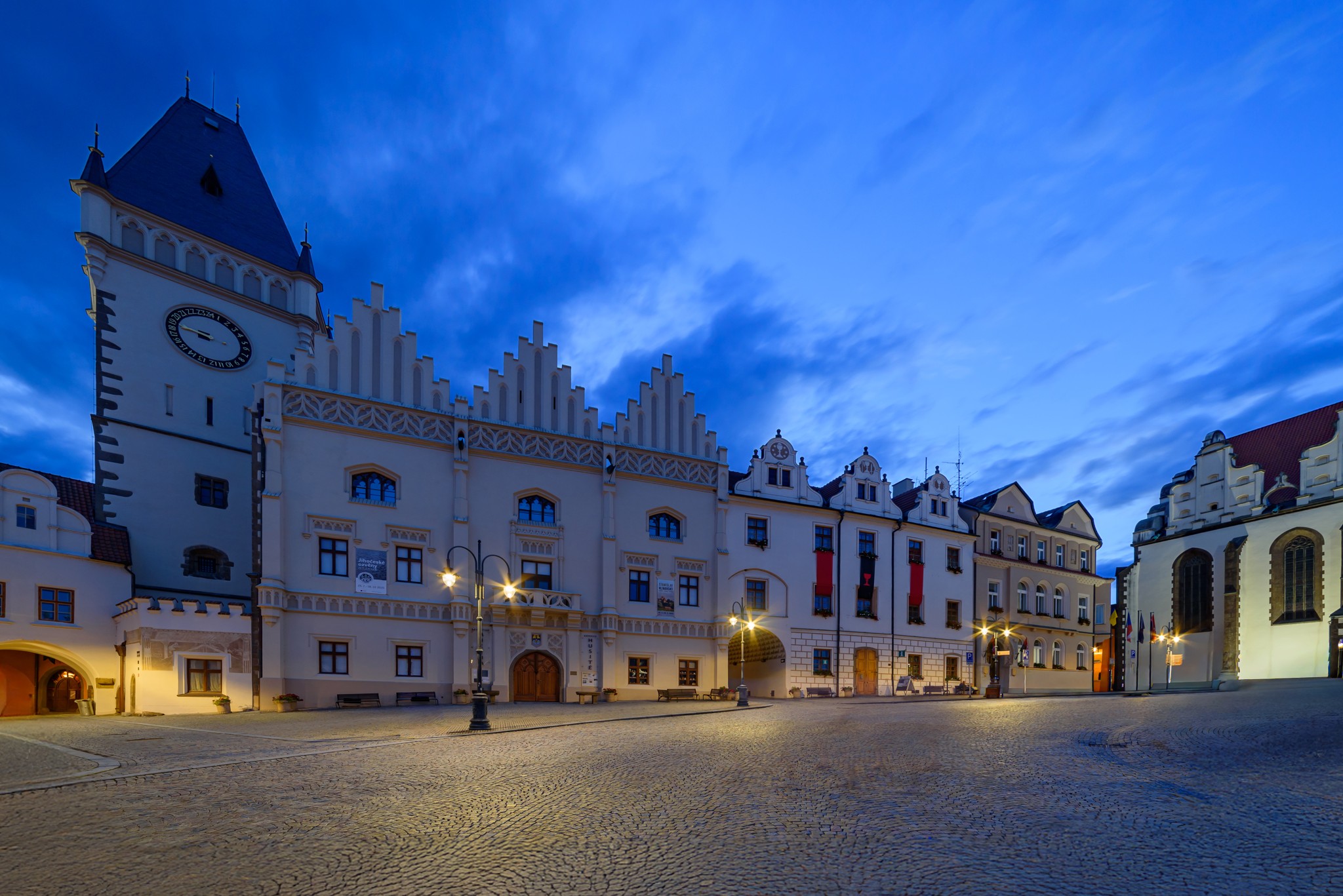 Traditionele ALBANY-armaturen verfraaien het historische centrum van Tábor na zonsondergang met een lager energieverbruik