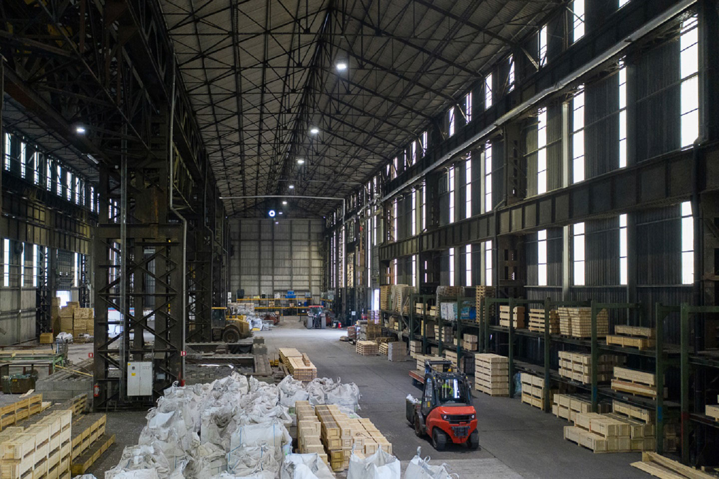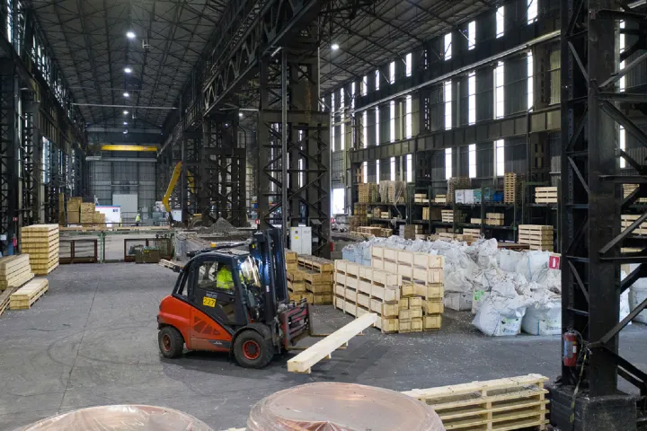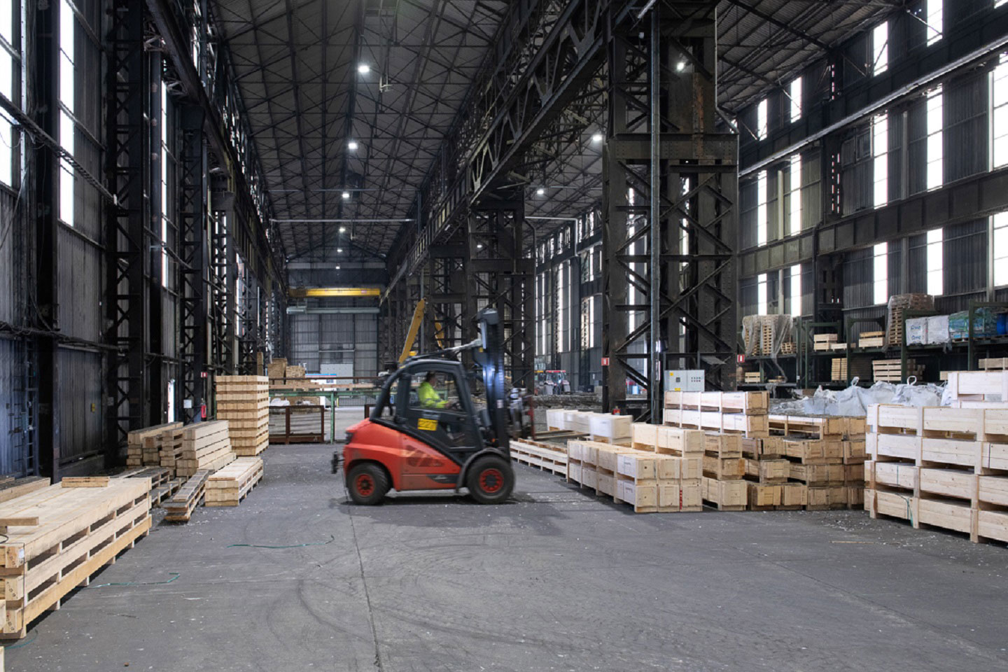 De sitemanagers beslisten om een oude industriële hal nieuw leven in te blazen om er koperrollen en -staven op te slaan.